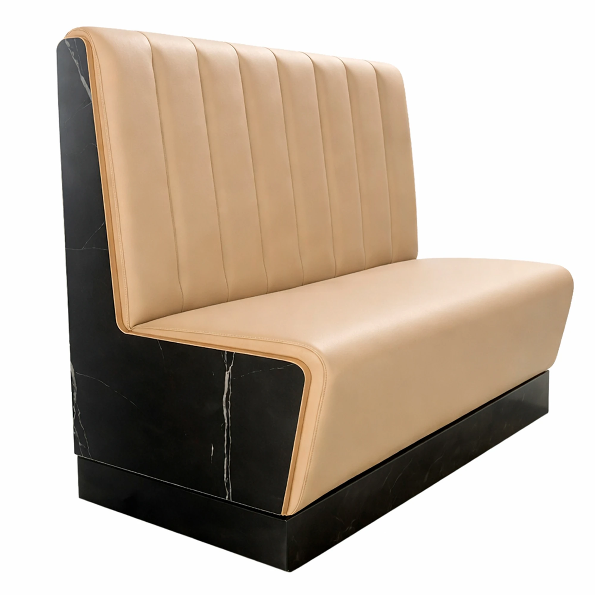 Nuestro banco corrido de restaurante Asmara en mármol negro es una pieza de mobiliario que combina elegancia, confort y exclusividad, pensada para restaurantes, cafeterías y hoteles que buscan diferenciarse con un diseño único. Este sofá de hostelería de un estilo moderno y refinado, este banco no solo ofrece comodidad a los clientes, sino que también eleva la estética de cualquier espacio. El banco corrido Asmara ha sido diseñado específicamente para el uso en interiores de restaurantes, cafeterías y hoteles.