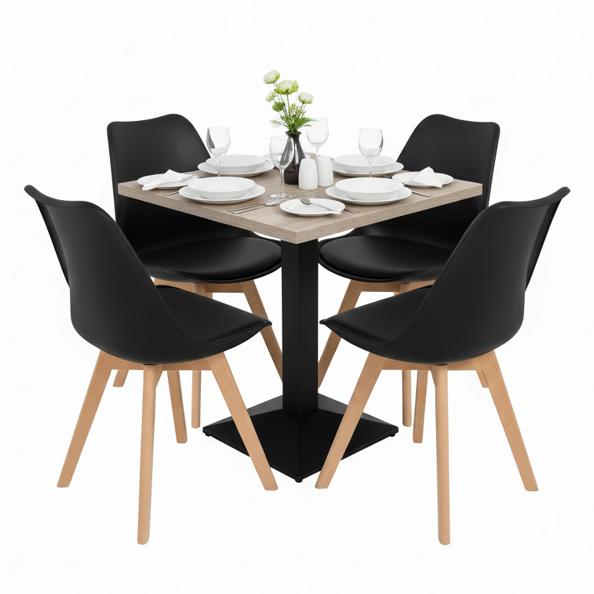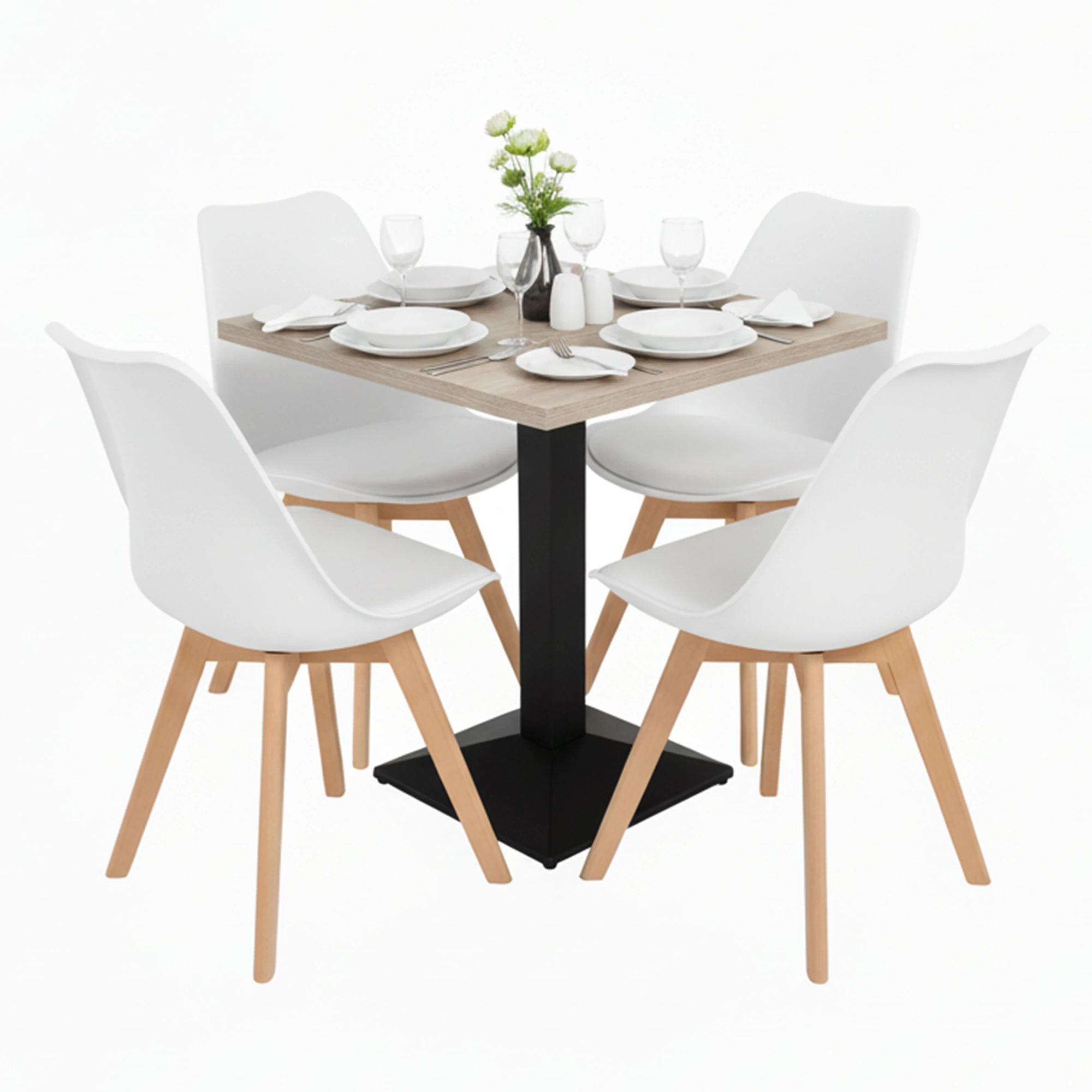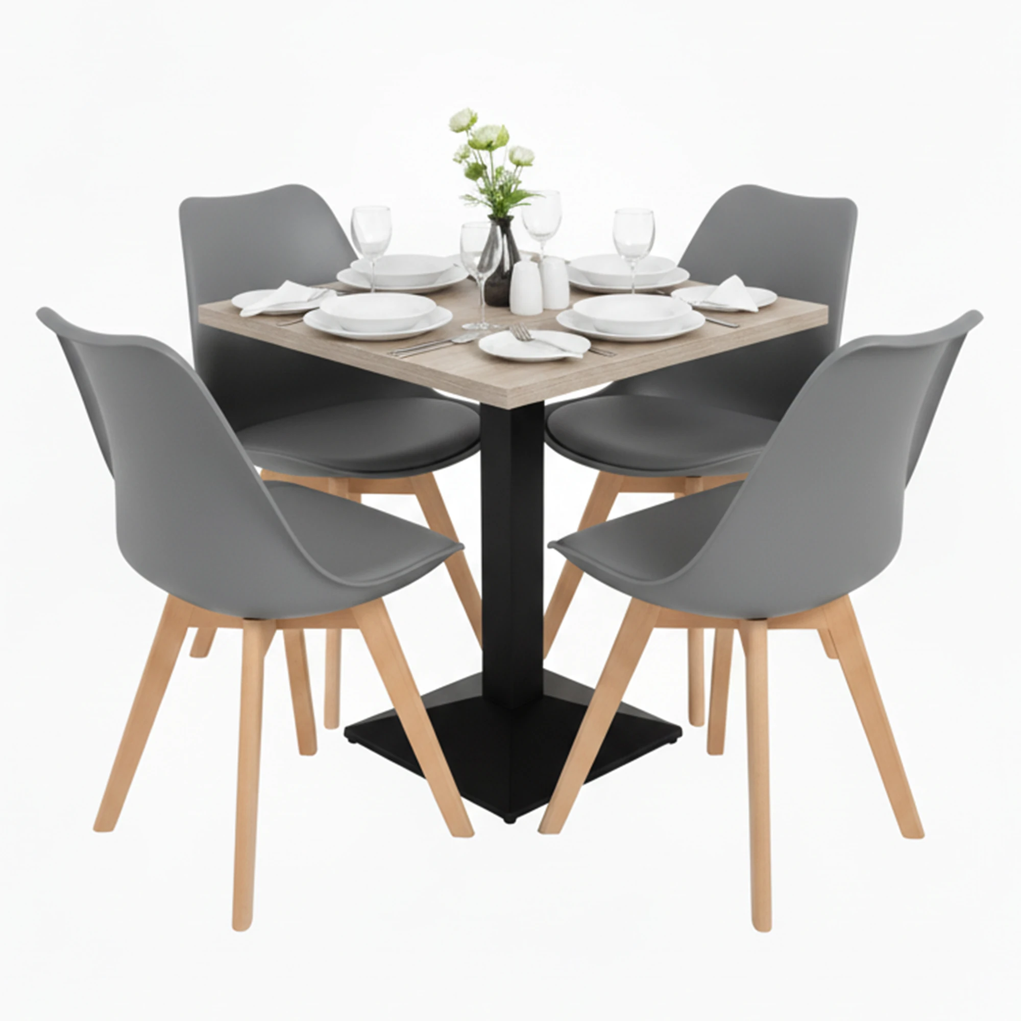 Nuevo pie de mesa cuadrado Pisa fabricado en hierro, fácil de instalar y adaptable a tableros profesionales hasta 80×80 cm. Base de mesa de comedor perfecta para hostelería y aplicaciones contract.