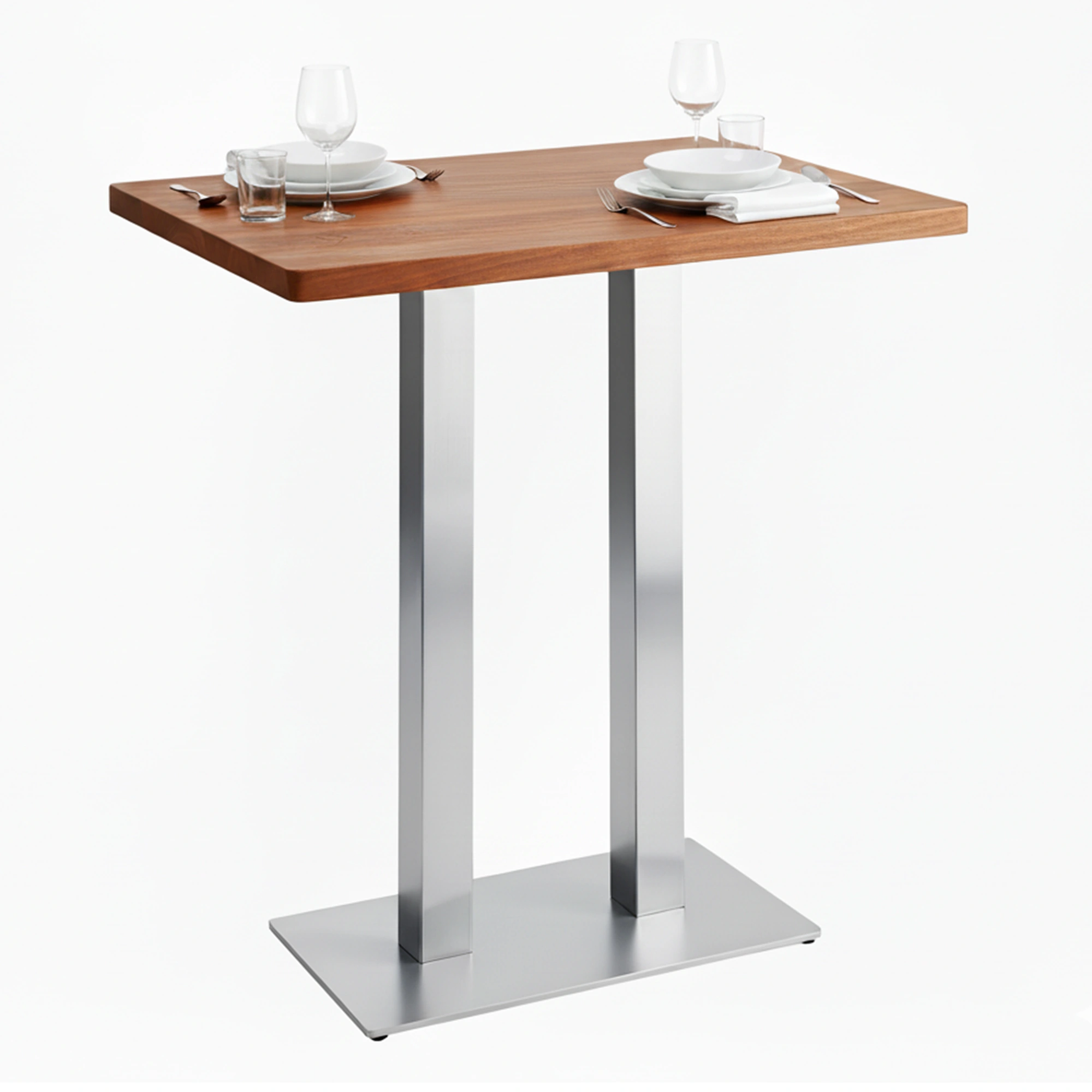 Nuestro pie doble de mesa alta rectangular Lof está diseñado para negocios de hostelería que necesitan estabilidad real, durabilidad y una imagen cuidada en zonas de bar, restauración informal o espacios de encuentro. Su estructura en acero inoxidable y su diseño de doble columna lo convierten en una base fiable para mesas altas rectangulares sometidas a uso continuo. Es una elección acertada para bares, restaurantes y hoteles que buscan mesas altas, firmes, seguras y alineadas con una estética actual y profesional.
