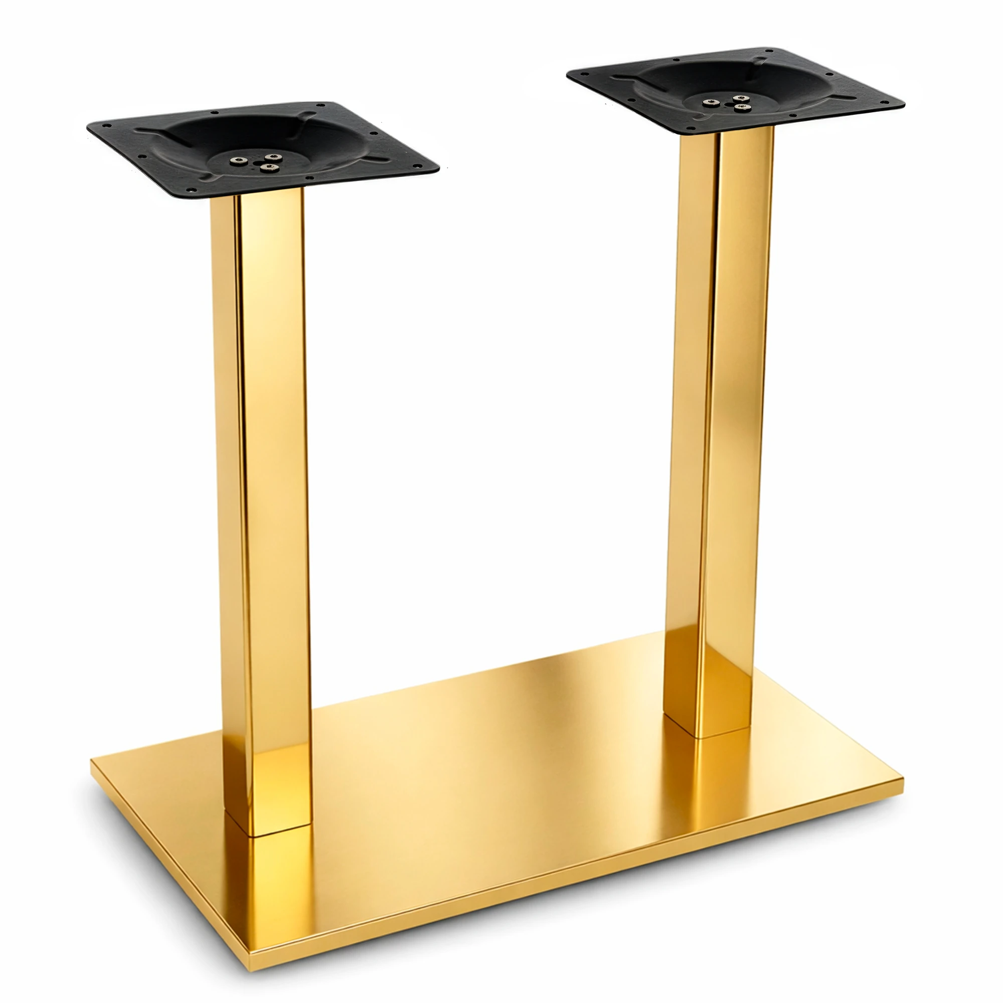Nuestro pie doble para mesa rectangular Bari en dorado es una elección idónea para restaurantes, bares y hoteles que buscan mesas firmes, visualmente atractivas y preparadas para un uso constante. Su estructura robusta transmite solidez desde el primer vistazo y ayuda a crear espacios donde el cliente percibe calidad y cuidado por el detalle.