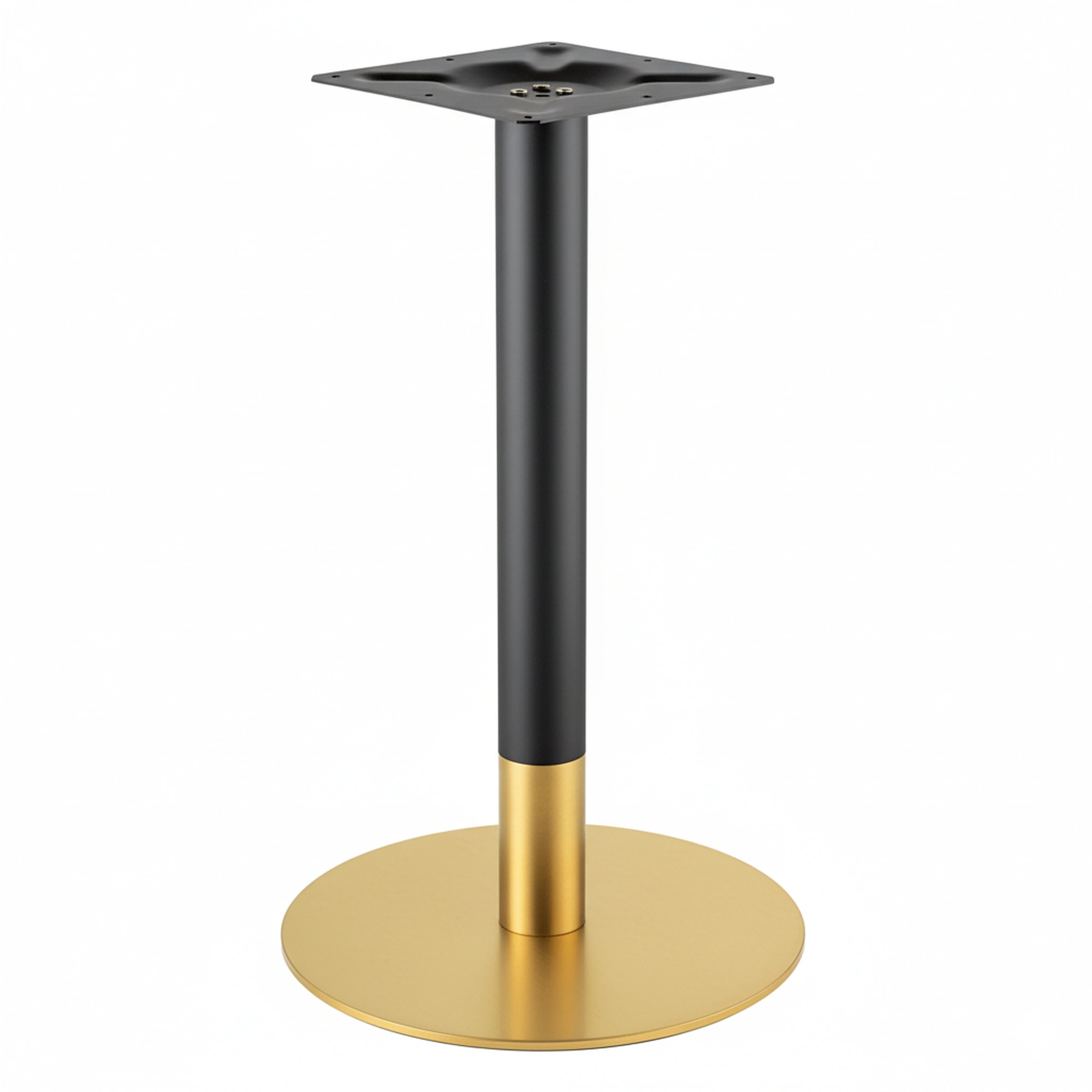 - Base redonda dorada y columna negra.