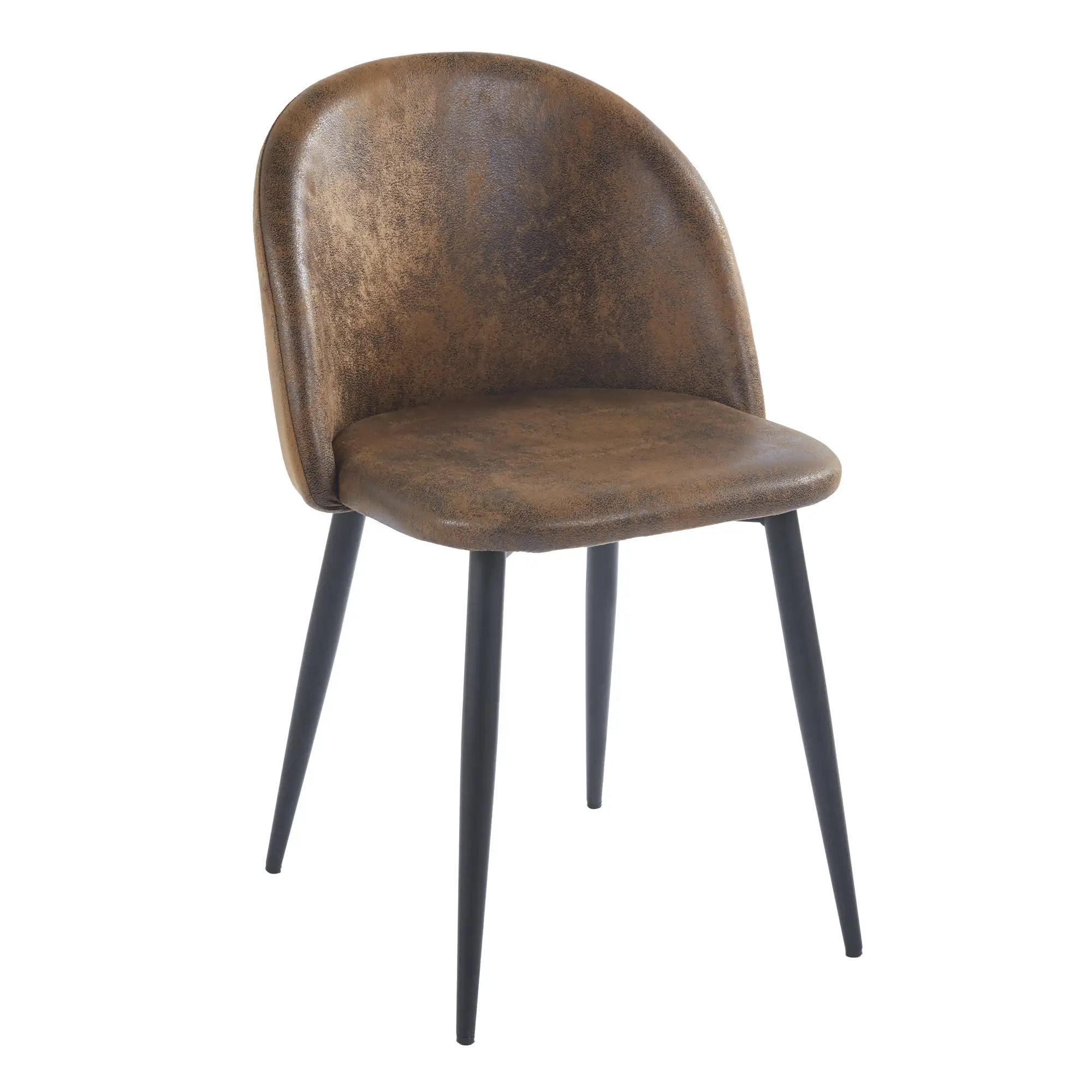 El asiento y respaldo vienen tapizados en polipiel color café, un material que transmite elegancia y al mismo tiempo es práctico en ambientes hosteleros y de fácil limpieza. Así, la silla de comedor Yumi combina metal resistente + tapizado fácil de mantener: una base sólida para un mobiliario que debe rendir.