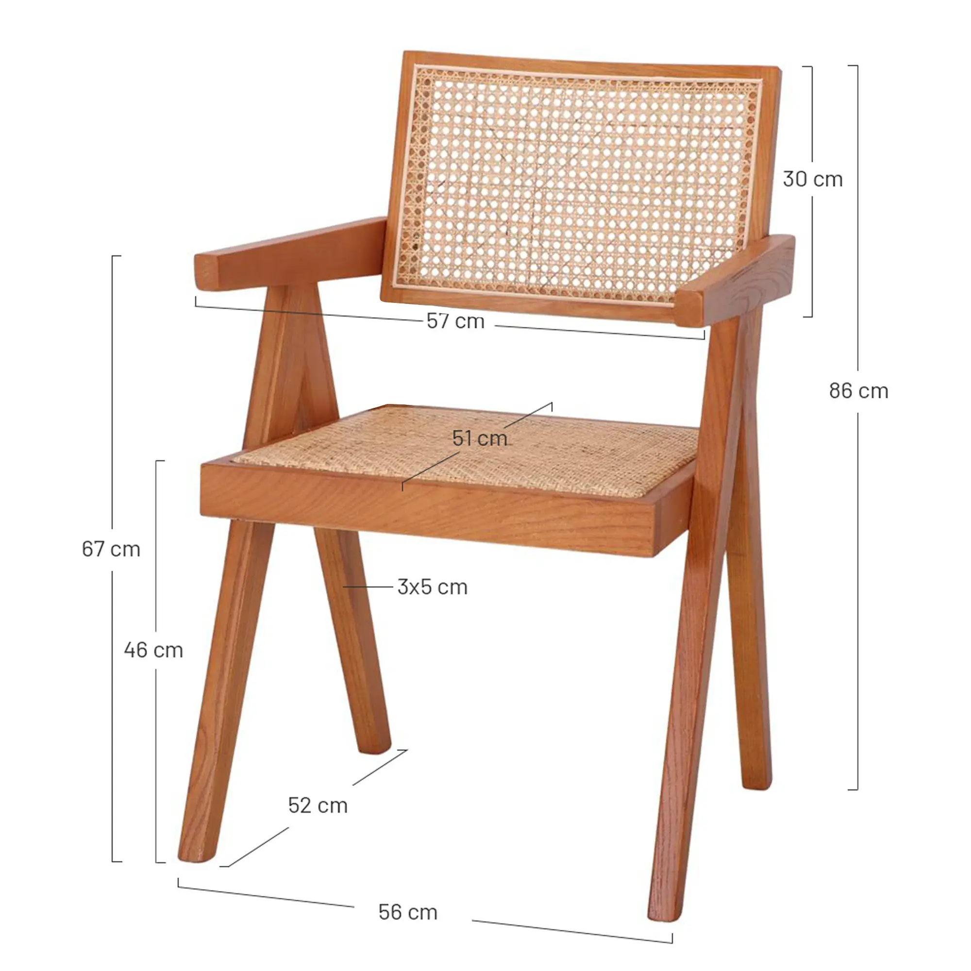 - Asiento y respaldo de ratán natural, frescos y transpirables.