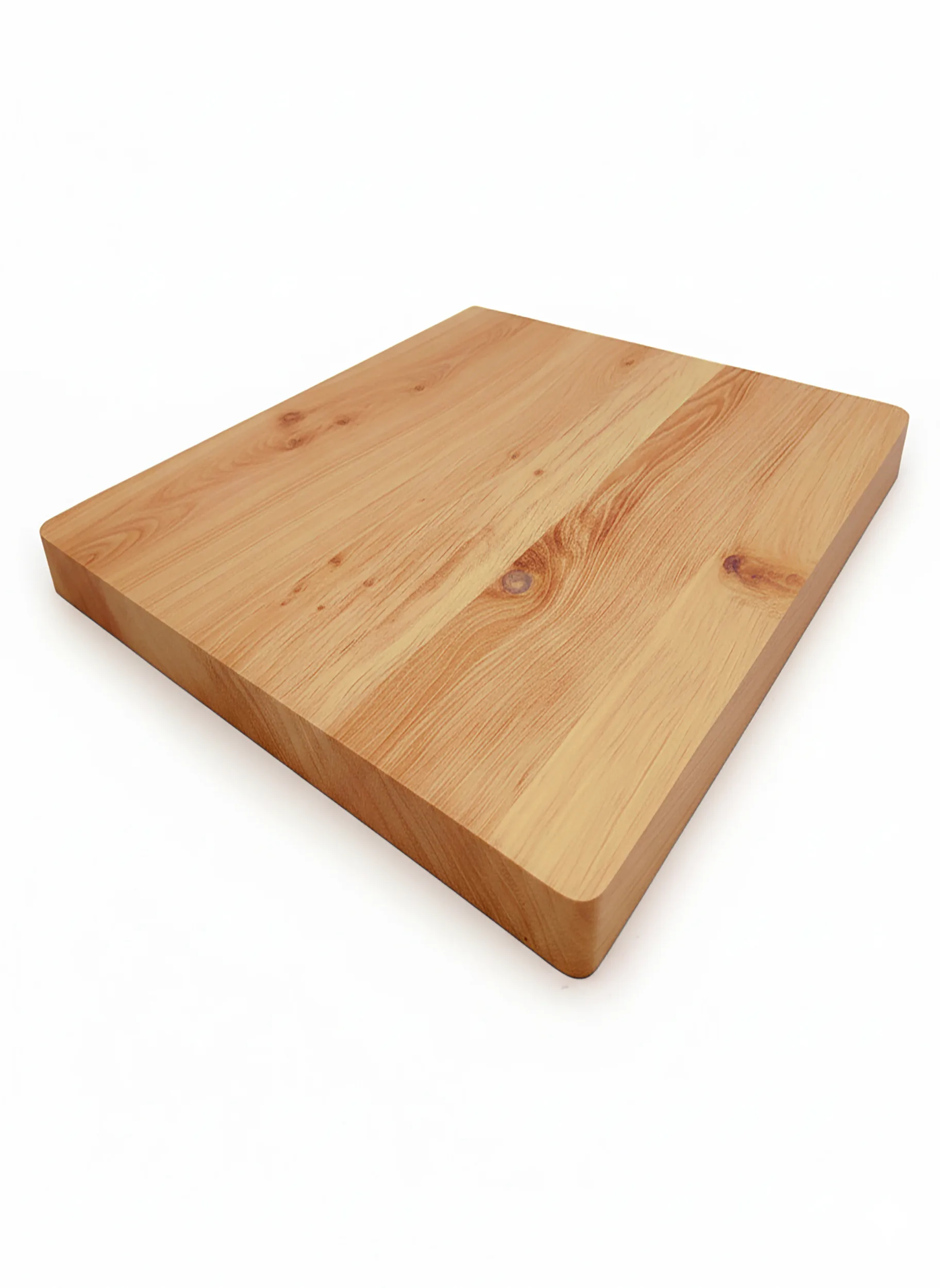 La madera de abeto alistonado constituye el núcleo del tablero al estar fabricada en madera maciza de 3 cm de grosor, resiste el uso intensivo típico de Horeca y Contract. Este material natural destaca por el equilibrio entre ligereza estructural y estabilidad dimensional, lo que se traduce en menos deformaciones con los cambios de temperatura o humedad del local. Este tablero de mesa con esquinas redondeadas mejora la seguridad y reduce el desgaste en zonas de paso frecuente, un detalle clave en espacios de servicio rápido o terrazas.