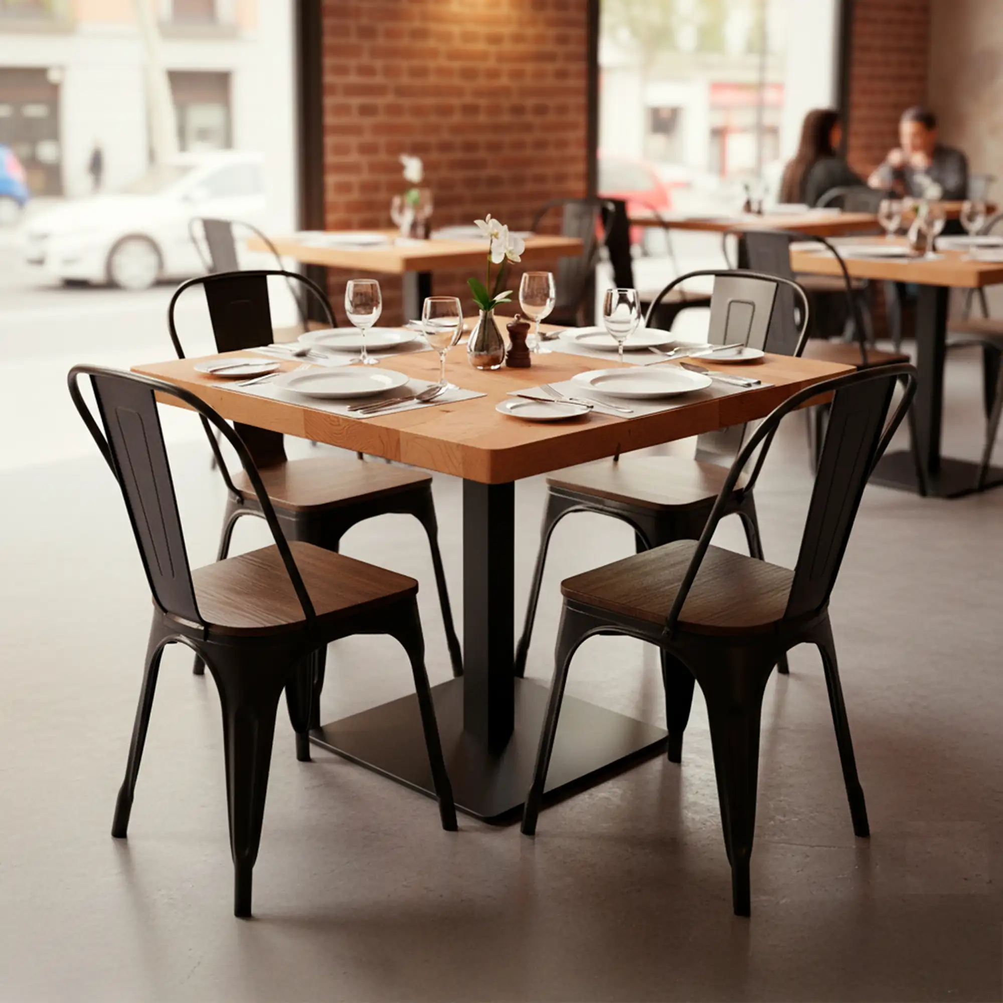 El acabado nogal americano realza las vetas naturales de la madera y aporta un tono uniforme que encaja con múltiples estilos de interior, desde lo rústico hasta lo contemporáneo. Este look refinado ayuda a reforzar la identidad visual del establecimiento y a crear una atmósfera coherente con marcas que buscan una experiencia de alta calidad.