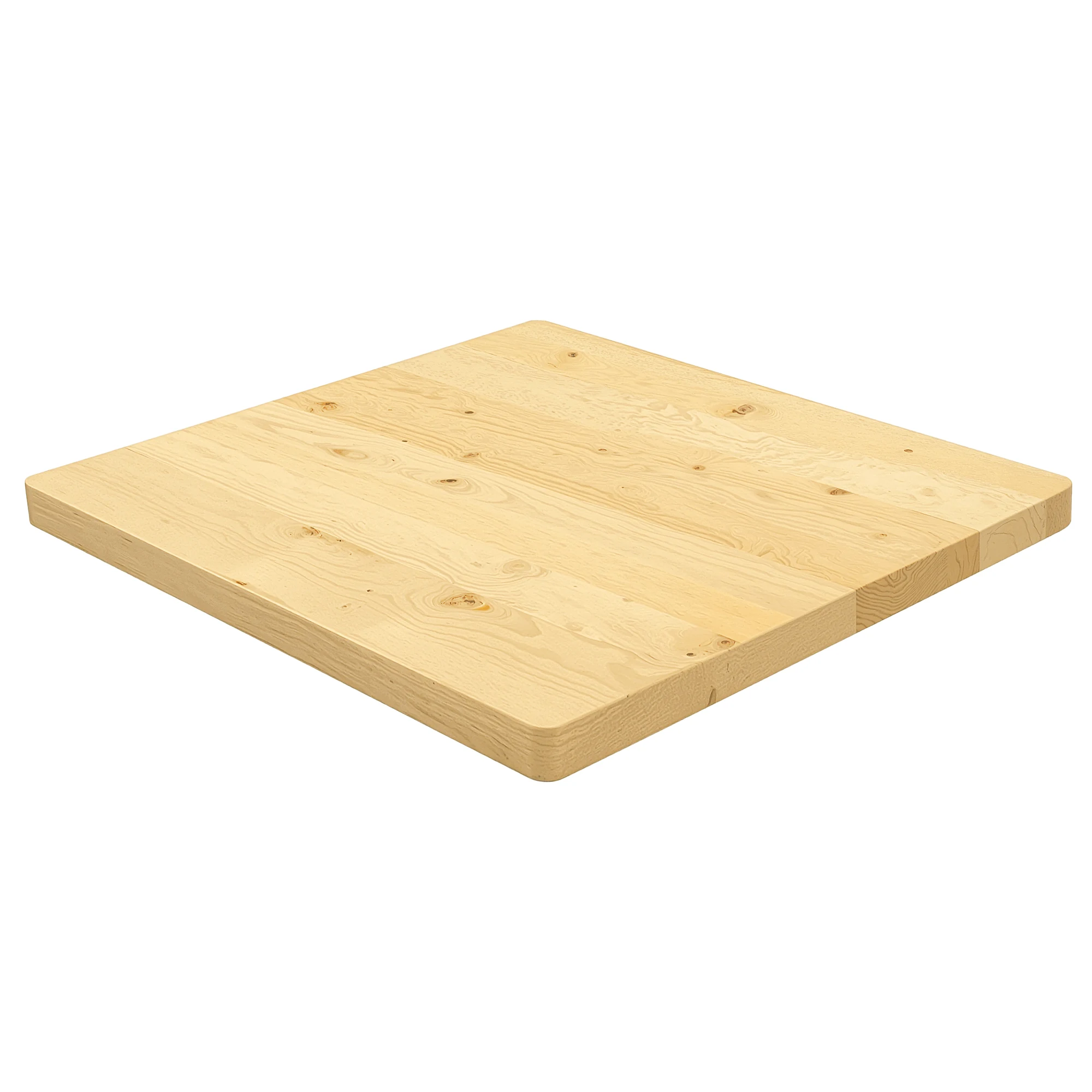 La madera de abeto alistonado constituye el núcleo del tablero al estar fabricada en madera maciza de 3 cm de grosor, resiste el uso intensivo típico de Horeca y Contract. Este material natural destaca por el equilibrio entre ligereza estructural y estabilidad dimensional, lo que se traduce en menos deformaciones con los cambios de temperatura o humedad del local. Este tablero de mesa con esquinas redondeadas mejoran la seguridad y reducen el desgaste en zonas de paso frecuente, un detalle clave en espacios de servicio rápido o terrazas.