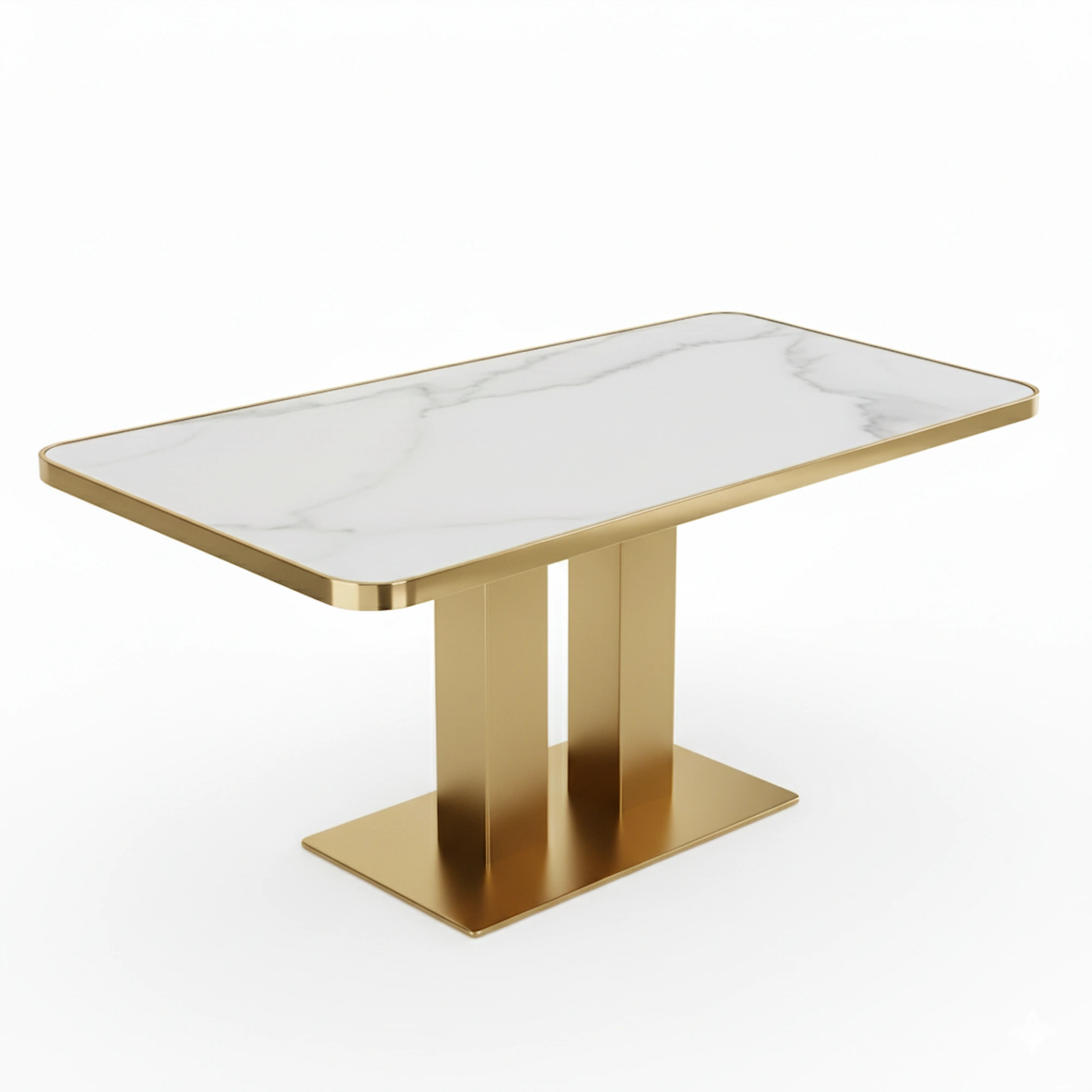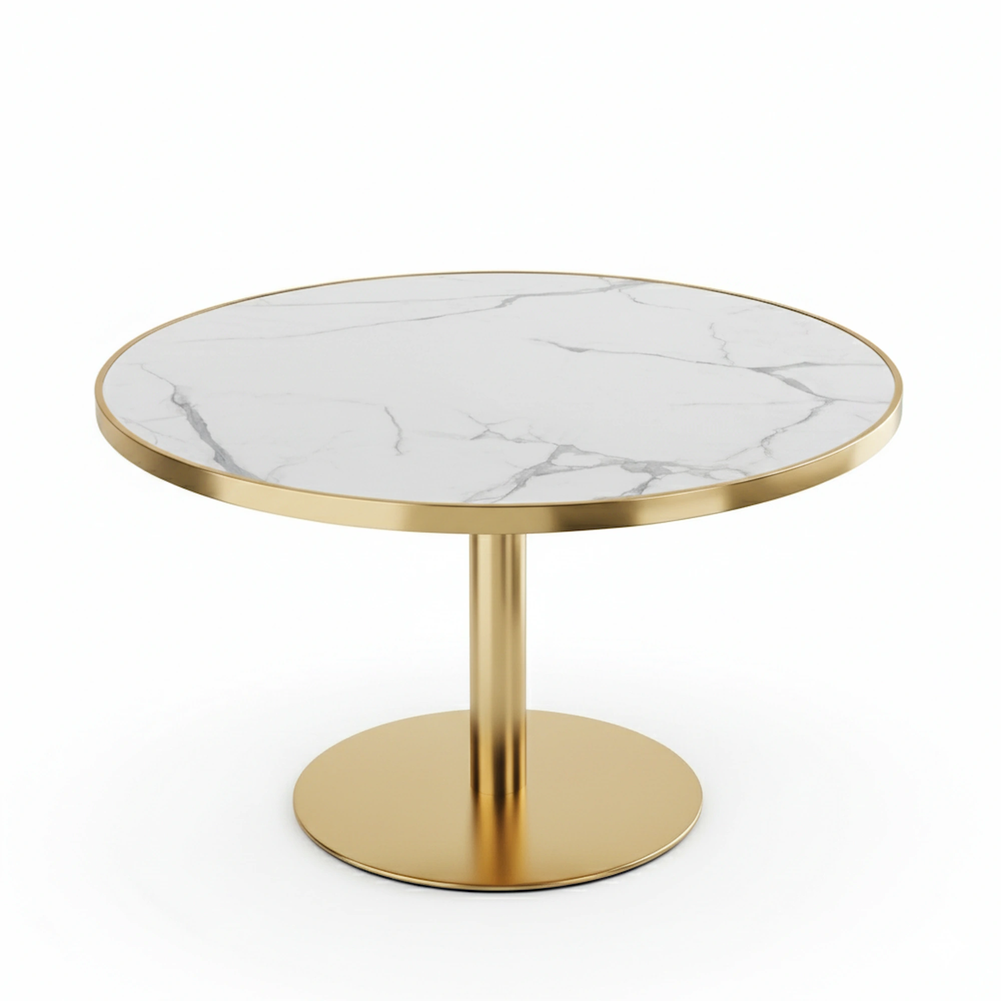 Nuestro tablero de mesa mármol blanco para hostelería es perfecto para restaurantes de diseño, cafeterías modernas, bares elegantes y hoteles de lujo. Los acabados dorados lo convierten en un elemento protagonista, ideal para combinar con bases metálicas en negro, dorado o cromo.