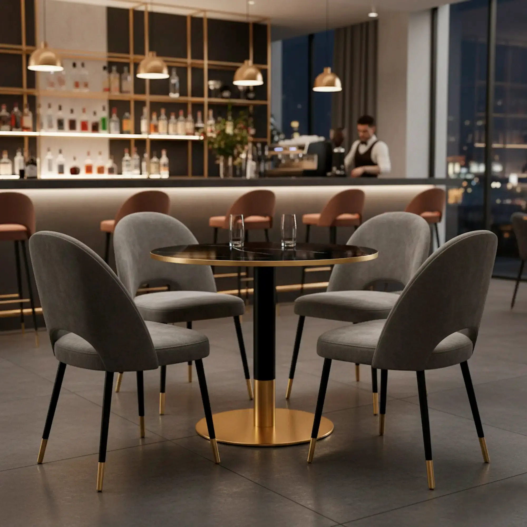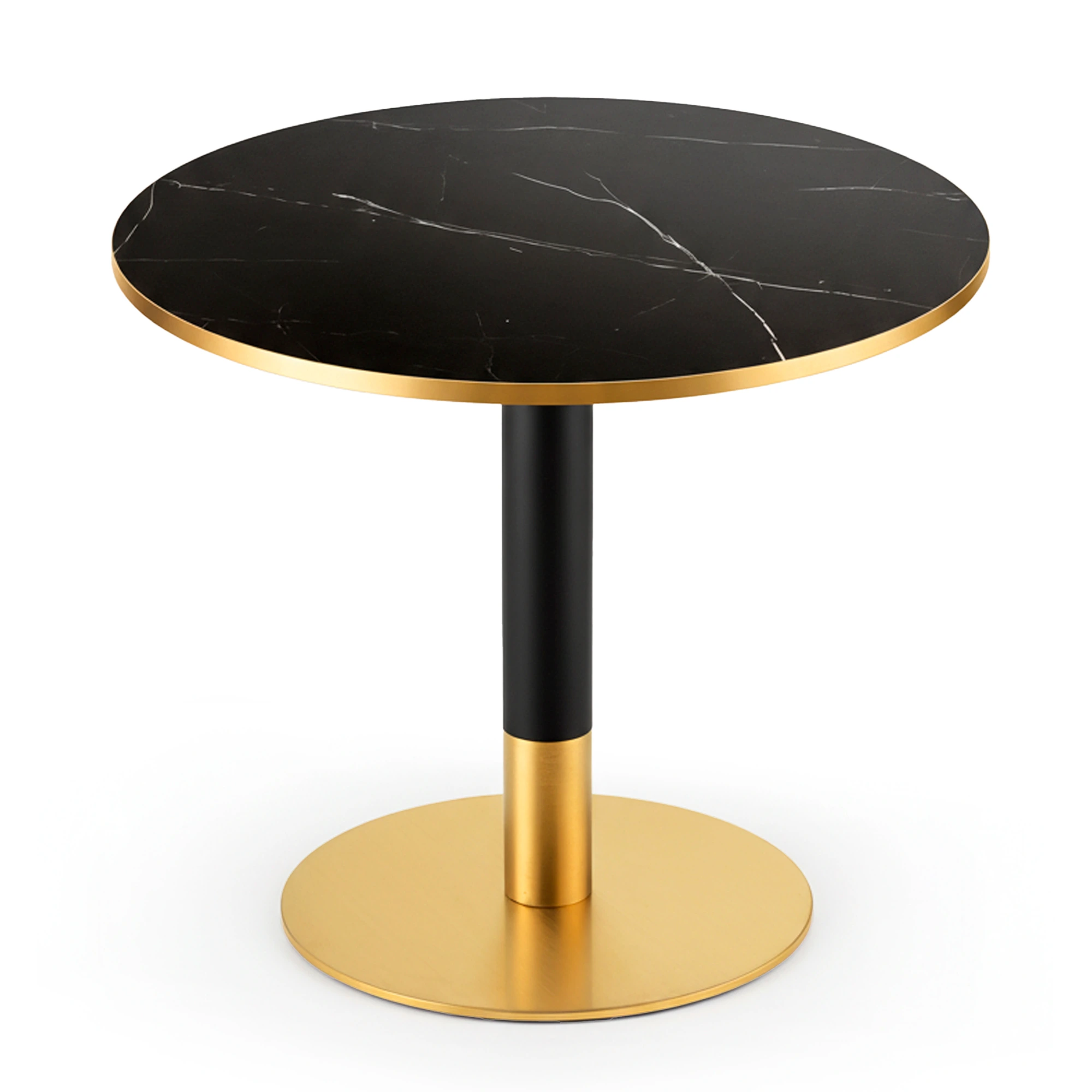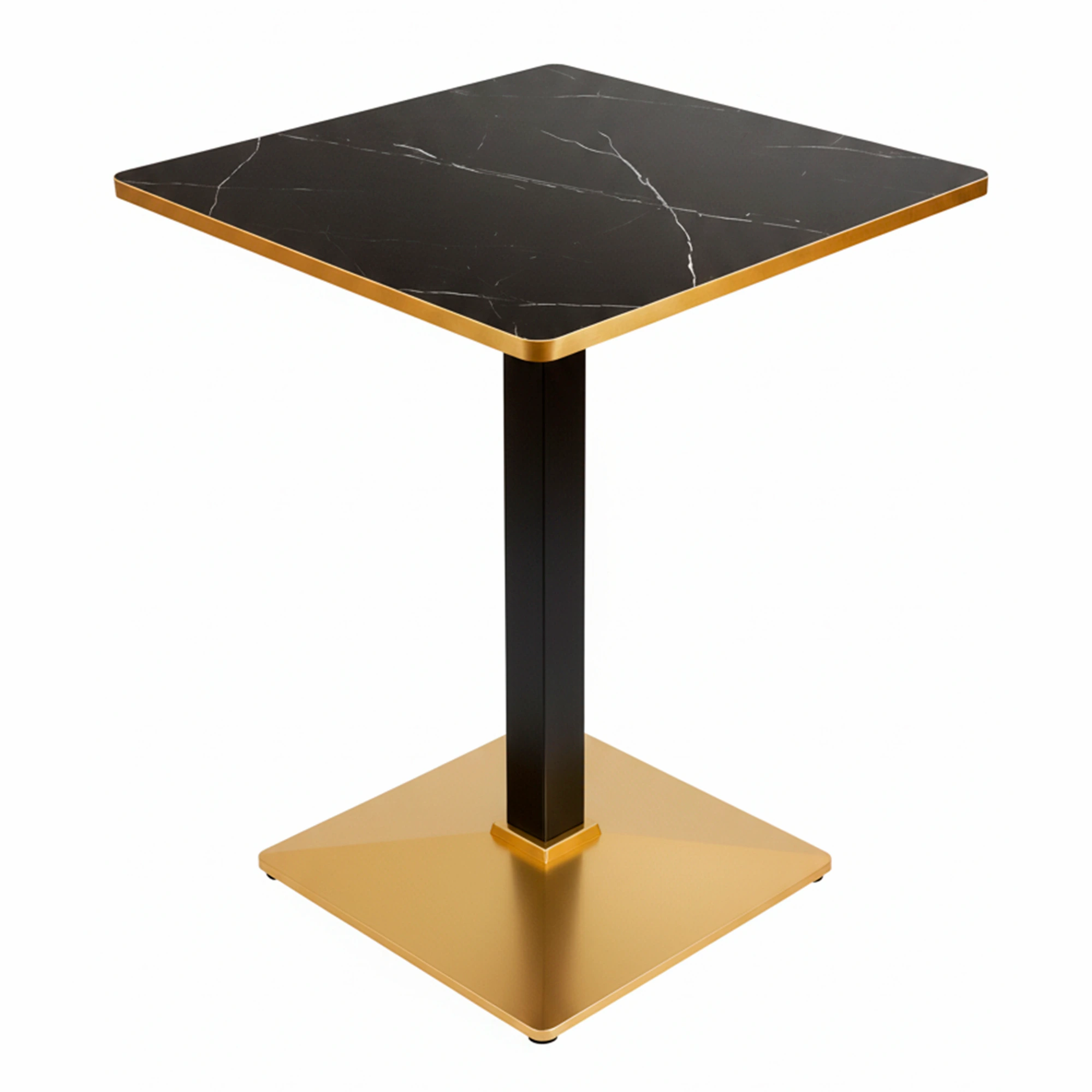 Tablero de mesa imitación mármol negro con canto dorado: la unión perfecta de diseño, resistencia y sofisticación para tu negocio de hostelería.