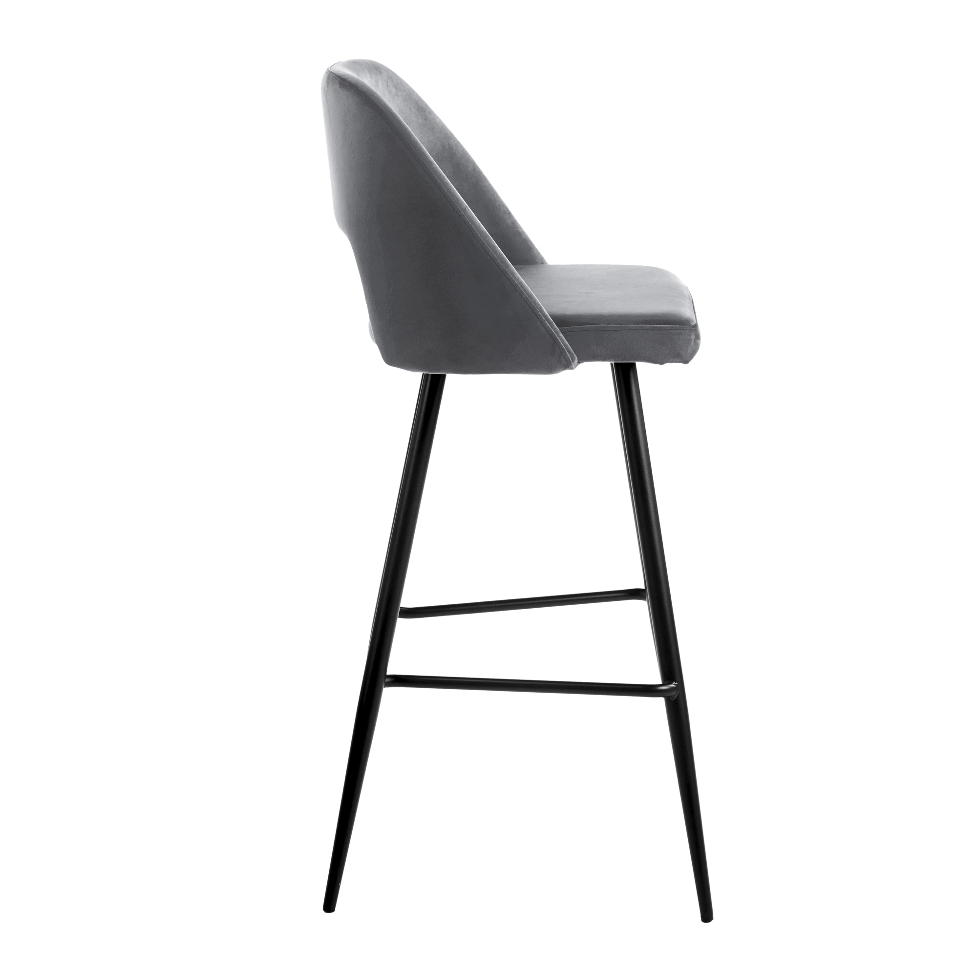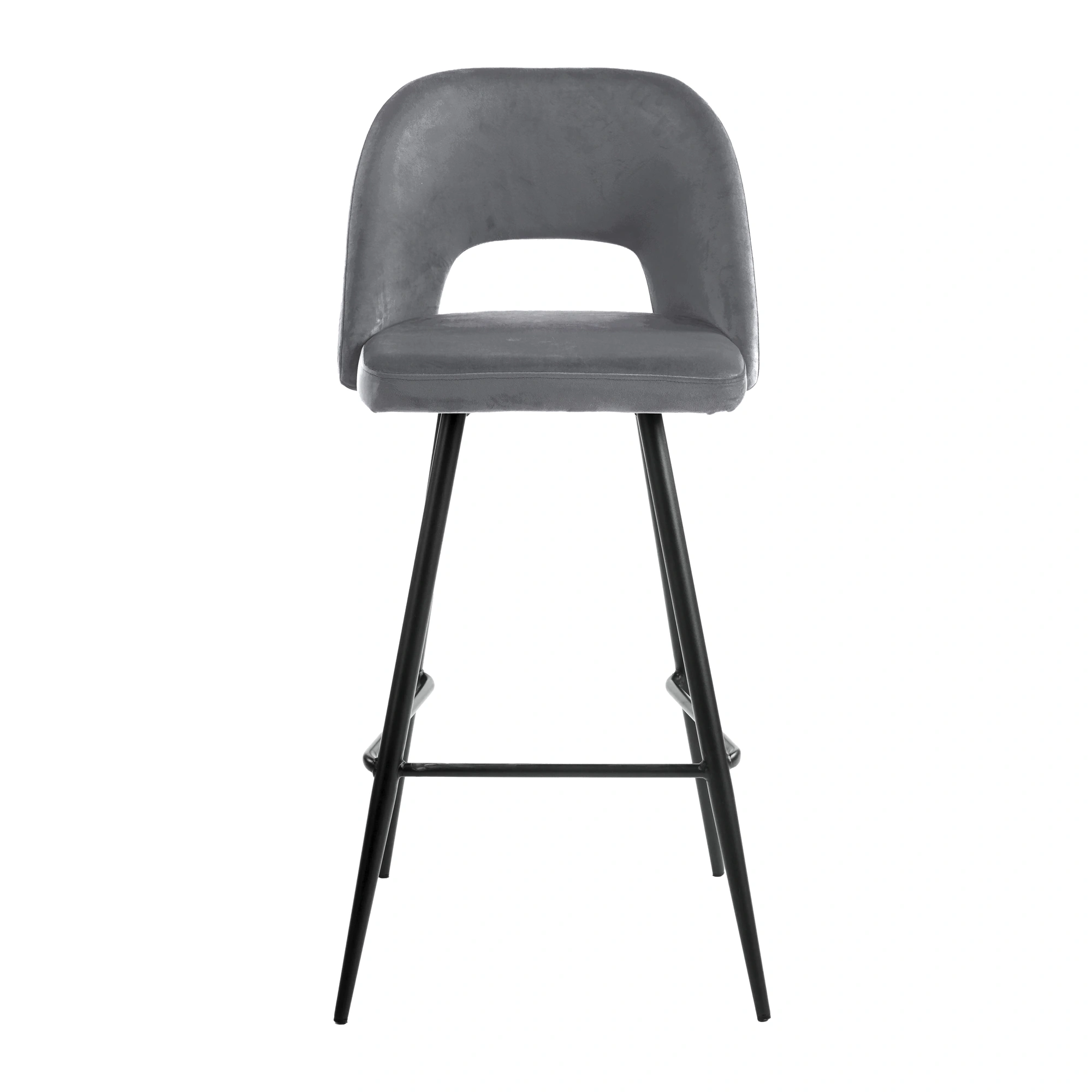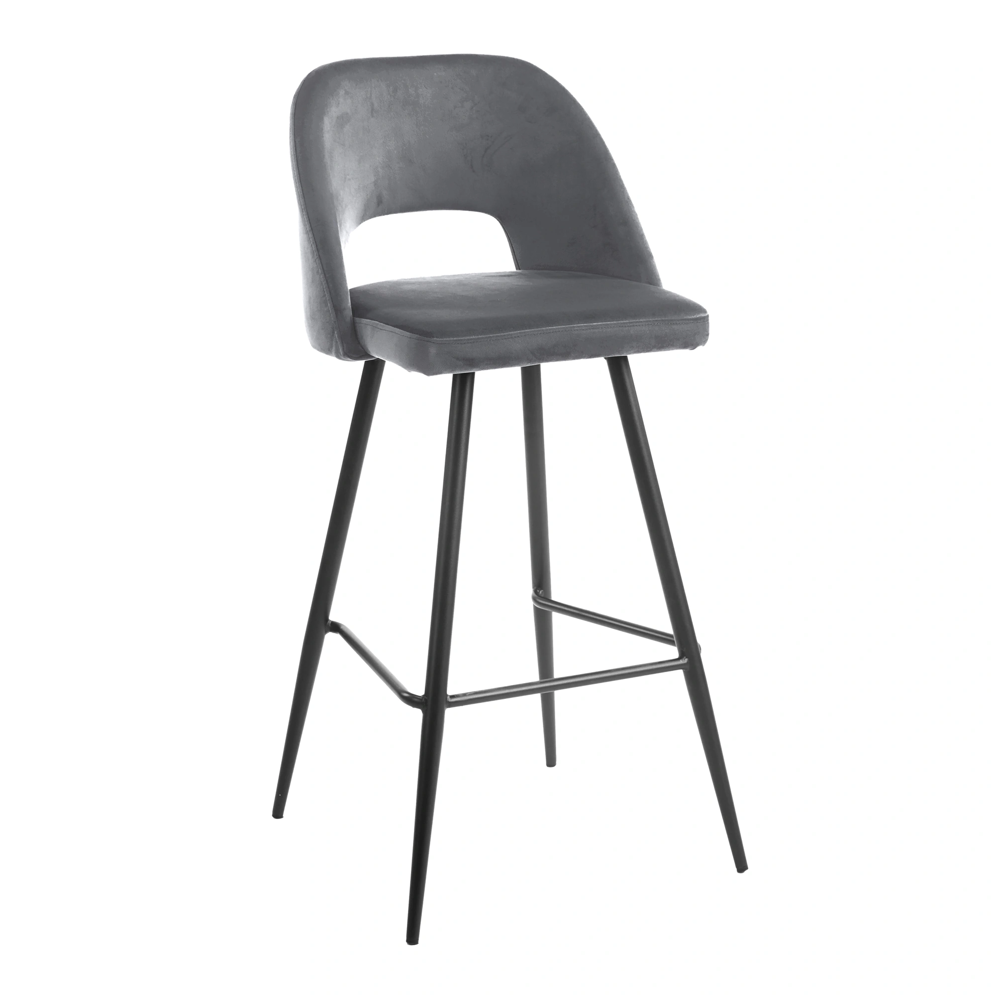 • Taburete con respaldo tapizado en poliéster terciopelo.