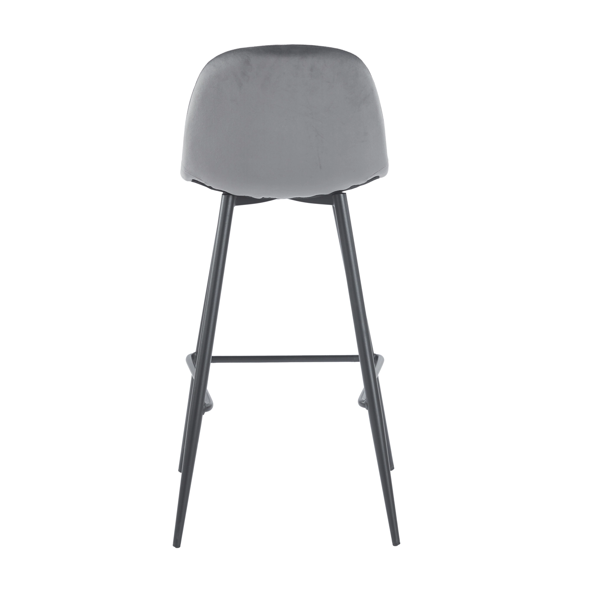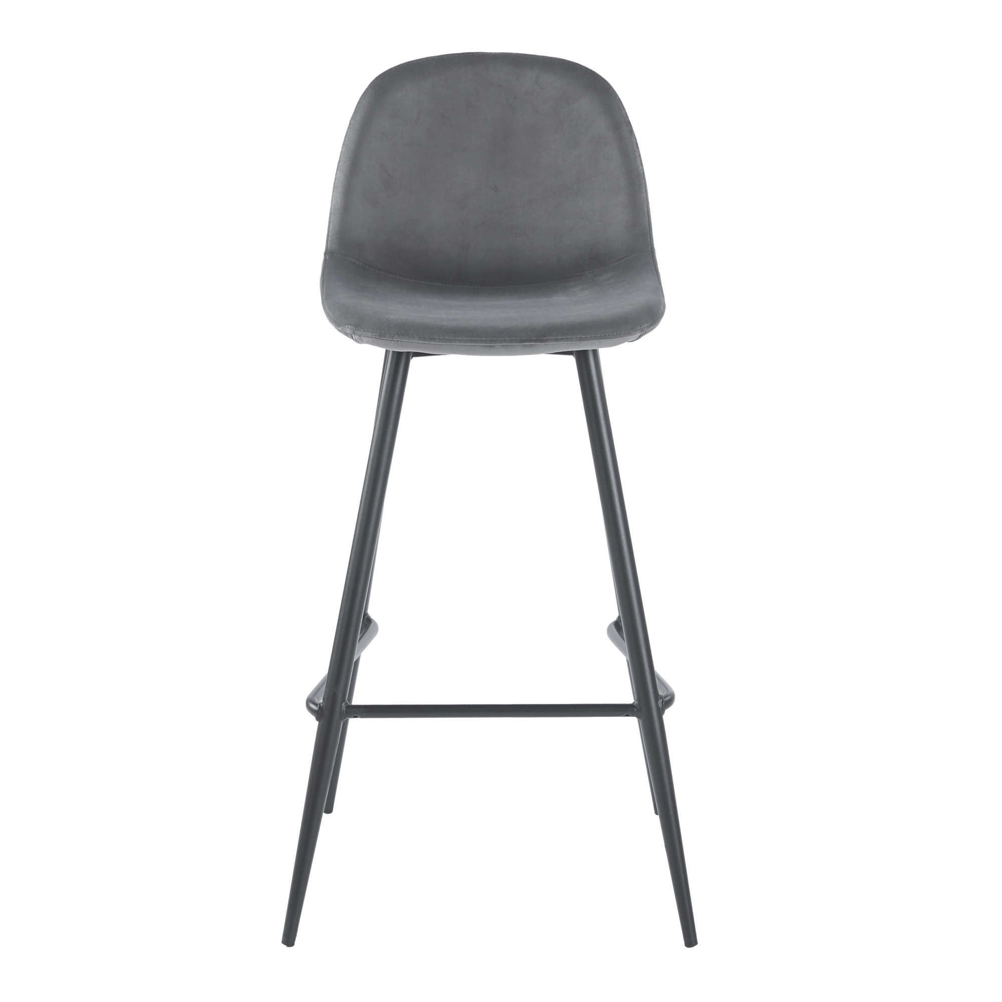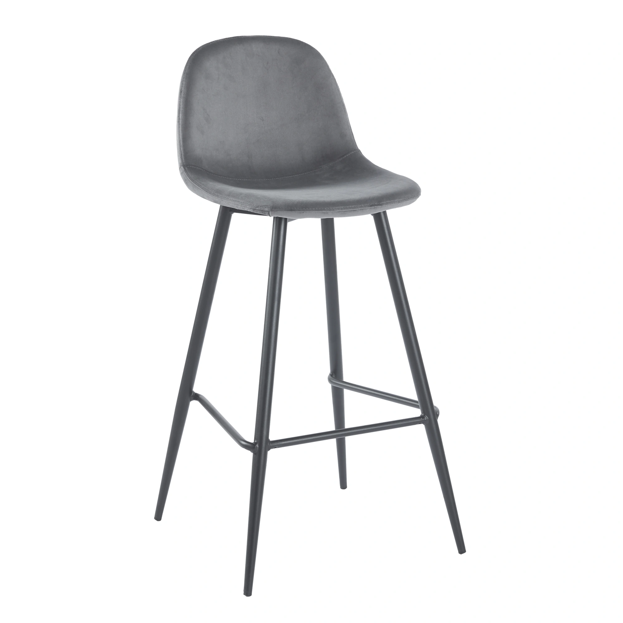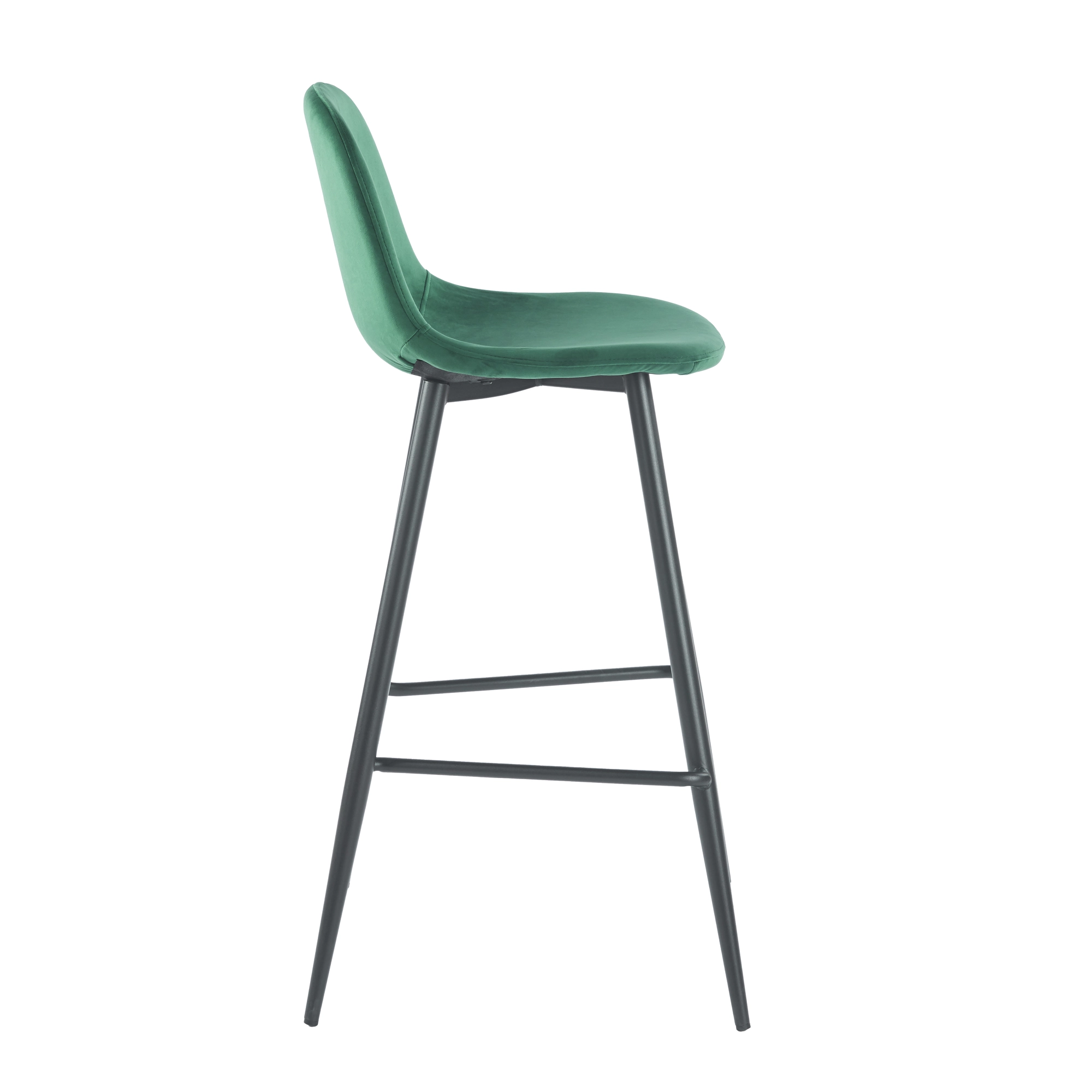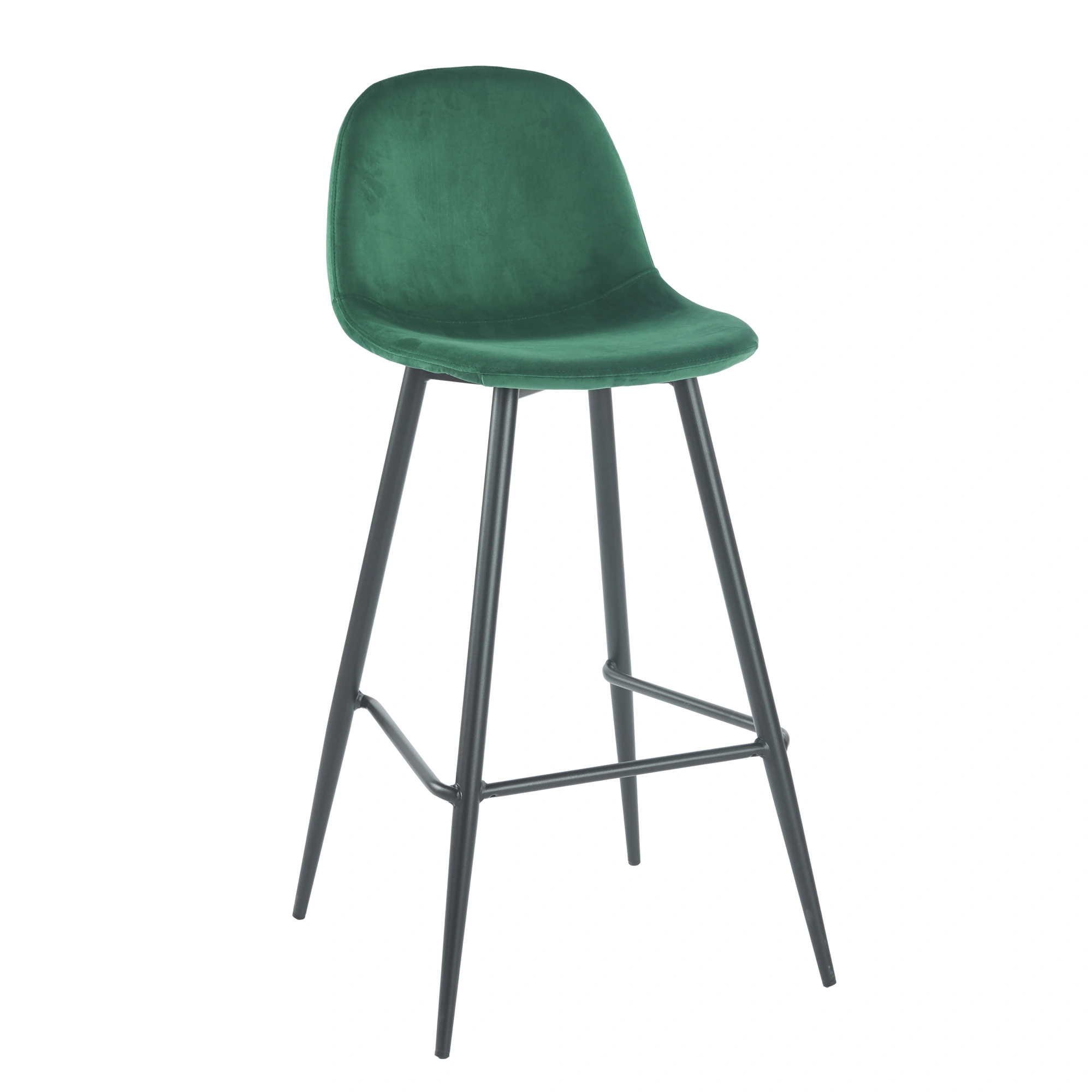 El taburete alto de interior Simp está fabricado con estructura en acero pintado de negro que proporciona robustez y soporte confiable incluso bajo uso intensivo en un entorno Contract y Horeca. El asiento y respaldo van tapizados en terciopelo gris o verde, ofreciendo una textura premium que aporta sofisticación al espacio. Aunque no se detallan todas las medidas públicamente, está diseñado como modelo “alto” para barras estándar, lo que lo hace especialmente adecuado para zonas de barra o food-service.