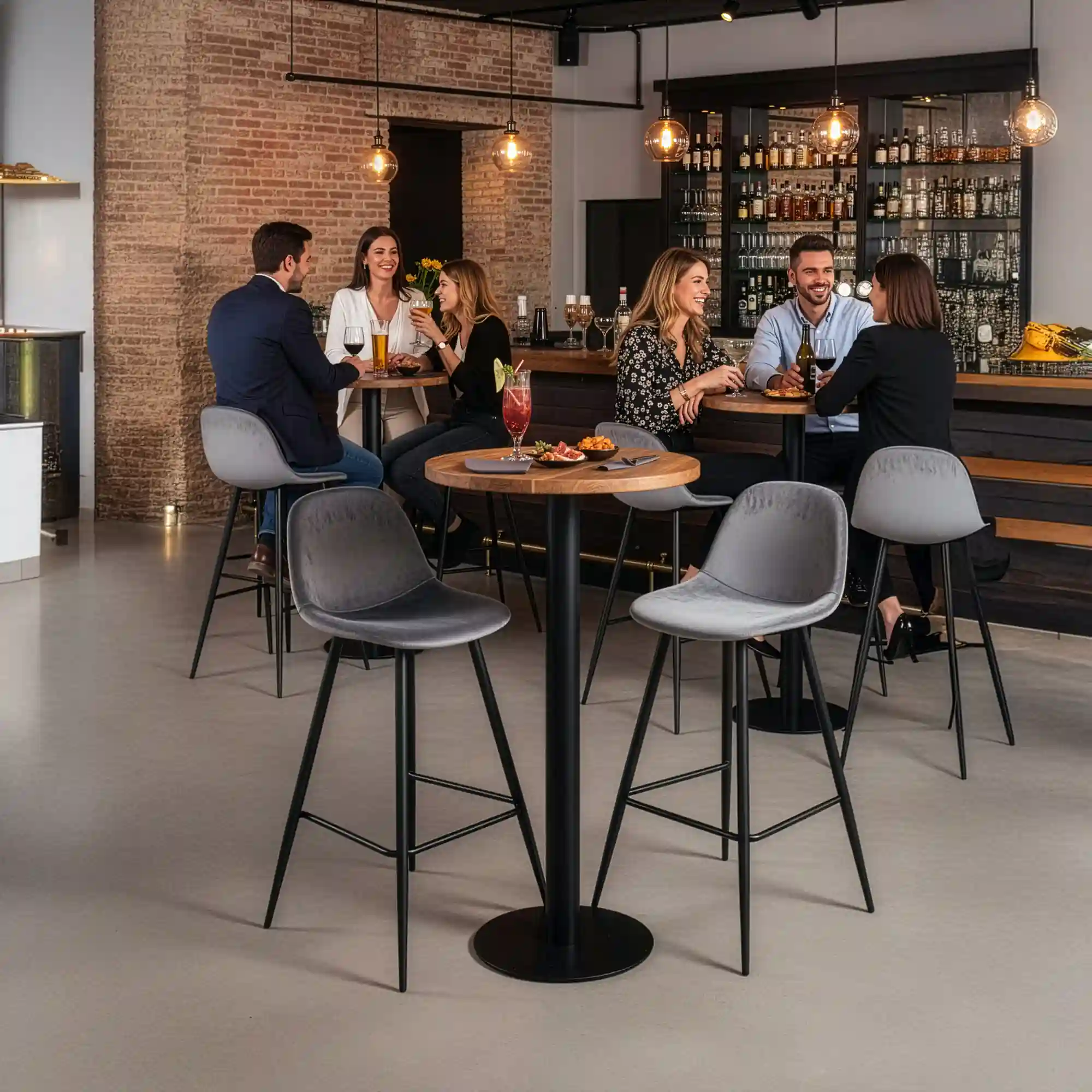 Cuando gestionas un bar, cafetería o espacio de restauración, la elección del mobiliario influye directamente en la operativa diaria, la estética del local y la experiencia del cliente. Con el taburete alto Simp en terciopelo, obtienes un asiento alto que combina diseño, funcionalidad y durabilidad, pensado para que tus clientes se sienten cómodo, tu equipo trabaje con facilidad y tu barra luzca profesional.